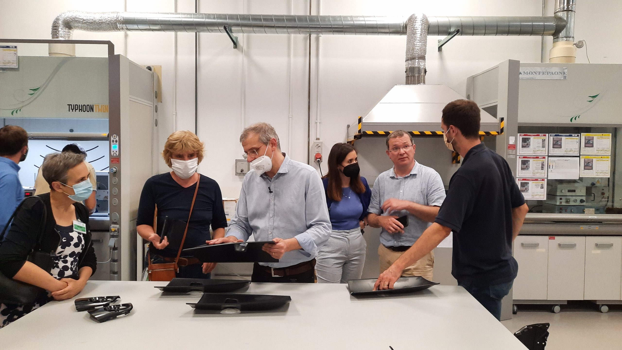 The first day was highlighted by a visit of the Centro Ricerche Fiat (Stellantis Group) research laboratory and upscaling installations. On this occasion the consortium attended the extruding of a FIAT 500 glove box with recycled plastic generated by Comet within the scope of the LIFE PlasPLUS project thereby highlighting success for activity 5.1 “Validation I : use of recycled ABS and PP in automotive components”. Several interviews with partners were also executed by the filming crew who flew from Belgium for the occasion.